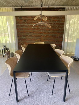 Hay Palissade Zwart Set tafel 168 ,2 dining armchairs met kussen en 1 bench