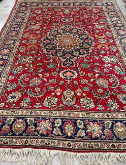 Handgeknoopt rood Keshan oosters tapijt - 298 x 196 cm