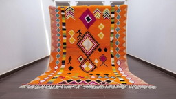 Beni Ouarain tapijt – 200 x 300 cm – Handgeweven Marokkaanse wol – Hedendaags oranje design