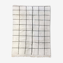 Marokkaans Berber Beni ourain Vloerkleed 200x310 cm, Wit en Zwart Marokkaans Mrirt Wollen Vloerkleed