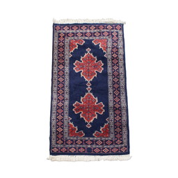 Vloerkleed Met Voornamelijk Donkerblauw Gemaakt Van Wol 139x66cm