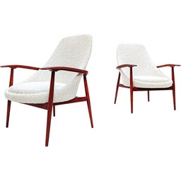 Paar vintage houten en witte gekrulde stoffen fauteuils, Italië 1960