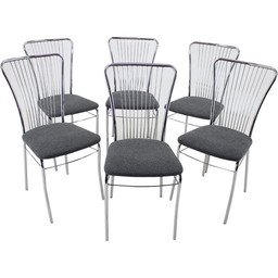 Set van vintage 6 Italiaanse eetkamerstoelen in bouclé stof, jaren 1970