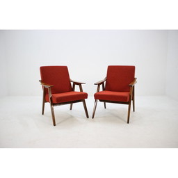 Paar vintage fauteuils in rode stofPaar vintage fauteuils in rode stof