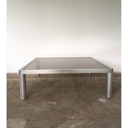 Vintage glazen en aluminium salontafel van Kho Liang, 1974