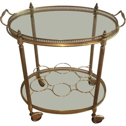 Vintage ovale messing drankenkar met flessenhouders, Frankrijk 1940