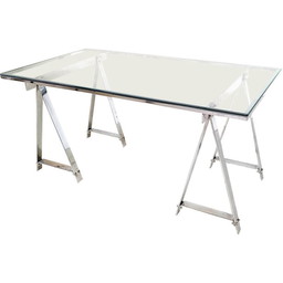 Mid-eeuwse eettafel van chroom en glas, Italië 1970