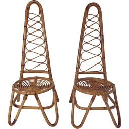 Paar Italiaanse vintage bamboe fauteuils met hoge rugleuning, jaren 1950