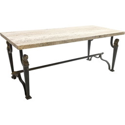 Vintage salontafel van smeedijzer en travertijn, jaren 1940
