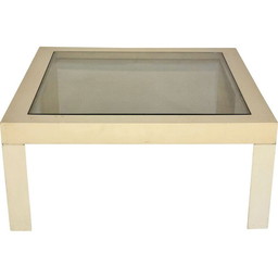 Vintage plastic en gerookt glazen salontafel, 1970Vintage plastic en gerookt glazen salontafel, 1970