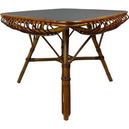 Vierkante vintage tafel van bamboe en rotan, 1960