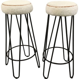 Paar vintage hoge krukken in zwart gelakte metalen buis, Frankrijk 1950