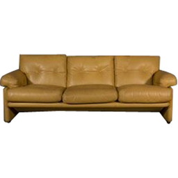 Vintage 3-zitsbank in leer van B and B Tobia Scarpa voor Coronado, 1970