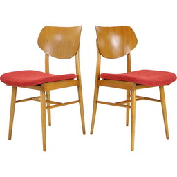 Paar vintage stoelen in beukenhout en stof van Ton, Tsjecho-Slowakije jaren 1965