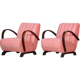Paar vintage roze Art Deco fauteuils, jaren 1930