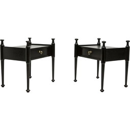 Paar vintage zwart gebeitst eiken en messing nachtkastjes, 1970