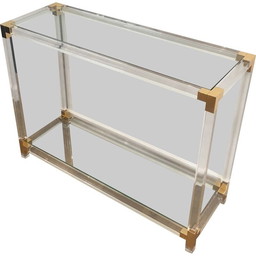Vintage console in plexiglas en gouden hoeken 1970Vintage console in plexiglas en gouden hoeken 1970
