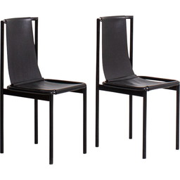Paar vintage stoelen van metaal en zwart imitatieleer