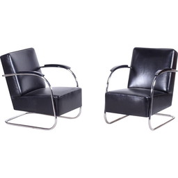 Vintage Bauhaus leren fauteuil van Mücke Melder, Tsjechië 1930