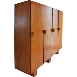 Vintage eikenhouten kast met leren en koperen handvat van André Wogenscky en Marta Pan