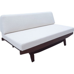 Italiaanse bank uit de Mid Century in wit boucle en hout, jaren 1960