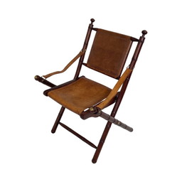 Officiersstoel - hout en lederen bekleding -