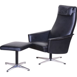 Vintage veganistisch lederen Bauhaus draaifauteuil met voetensteun, 1960