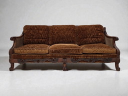 Jaren 1930-1935, Deense driezitsbank, meubelvelours, meubelgaas, gesneden essenhout.