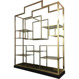 Vintage messing en glazen plank van Romeo Rega, Italië 1970