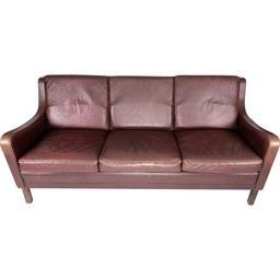 Vintage driezitsbank met roodbruin leer van Stouby Furniture 1960