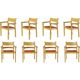 Set van 8 vintage beuken fauteuils van Hans J. Wegner