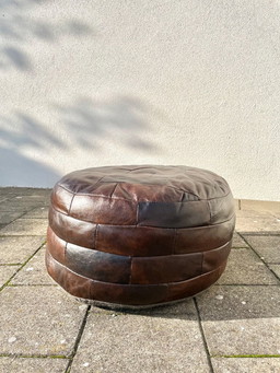 Vintage patchwork leren poef, de Sede likeVintage patchwork leren poef, de Sede like