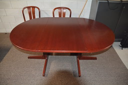 Schuitema kersenhout eettafel met 8 stoelenSchuitema kersenhout eettafel met 8 stoelen