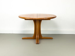 Deense ronde teakhouten eettafel met verlengstukkenDeense ronde teakhouten eettafel met verlengstukken