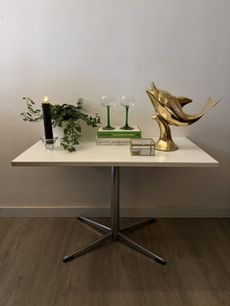 Bijzettafeltje wit blad met chroom poot