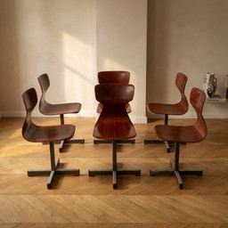 Set van 6 Pagholz stoelen in mid-century modern stijl, met gevormde multiplex zittingen en stalen onderstel, jaren 60.