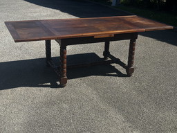 Uitschuifbare tafel van massief eikenhout, met gedraaide poten, 19e eeuw.Uitschuifbare tafel van massief eikenhout, met gedraaide poten, 19e eeuw.
