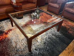 Vintage / Mid Century Wengé salontafel met rookglas