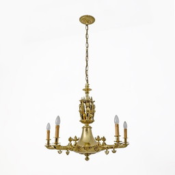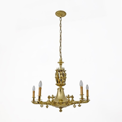 Vintage kroonluchter uit 1998, massief messing, goudkleurig, plafondlamp met 8 lampen