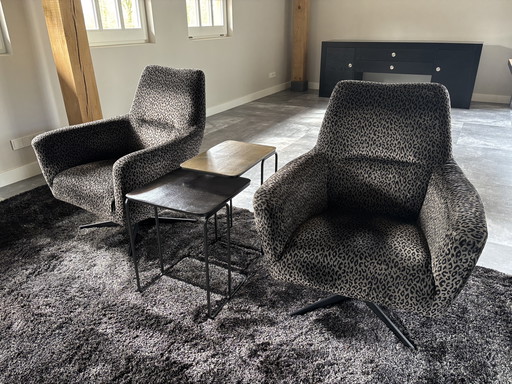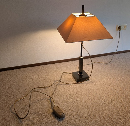 Een paar tafellampen uit de jaren 70 van geborsteld goudkleurig metaal, DLG Maison Charles, jaren 70
