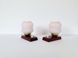 Zeldzame en prachtige messing tafellamp uit de jaren 1940 met opalen glazen kap.