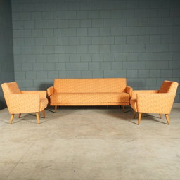 Set van 3 vintage beukenhouten stoelen | Duitse eetkamerstoelen uit de jaren 70 | Gerestaureerd en opnieuw bekleed