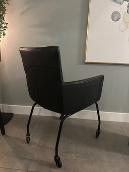 Vintage cantilever barkruk, chromen frame, zwart kunstleer, jaren 90