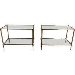 Vintage nachtkastje van messing en hout op wielen, 1940