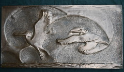 vintage ruscha wandtegel landelijk landschap met huis en bomen jaren 70
