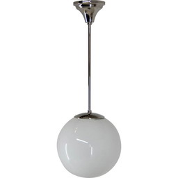 Vintage Art Deco kroonluchter in opaal glas en hout, 1930