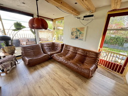 Vintage modulaire groene/gestreepte fauteuils-bank