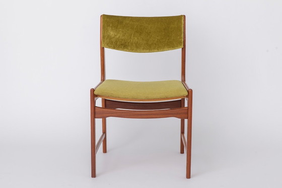 1 of 5 Vintage Teak Dining Chair 1970s Germany, Restored Wood Frame, Green Upholstered Seat, Mid Century Modern