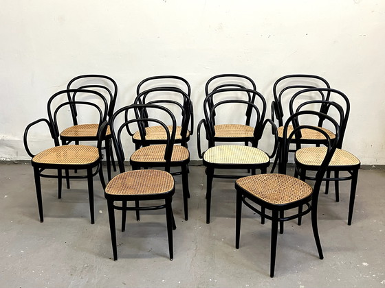 10x Thonet Stoel Model 214 ,4X Armleuning,6x zonder
