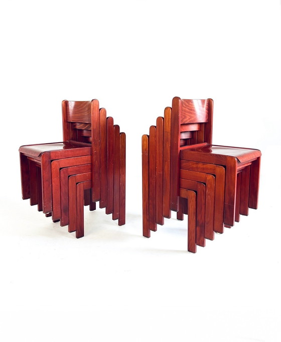 Set van 10 vintage plywood stapelstoelen uit de jaren ‘60.